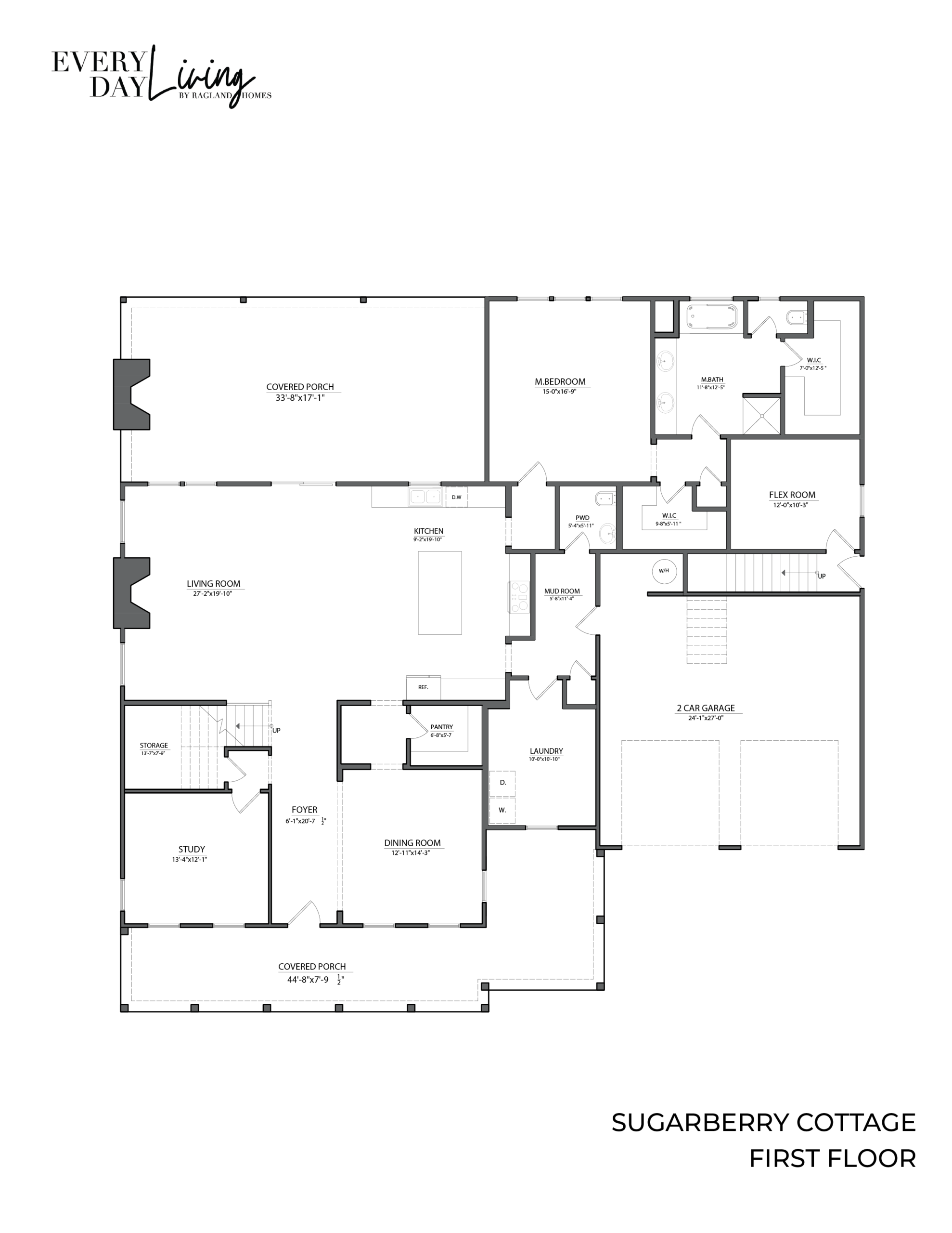 The Sugarberry Cottage is a charming two-story home designed for entertaining, comfort, and flexibility. This four-bedroom, four-and-a-half-bath floorplan includes a two-car garage and two generous covered porches, creating inviting outdoor spaces perfect for enjoying Carolina summer nights.