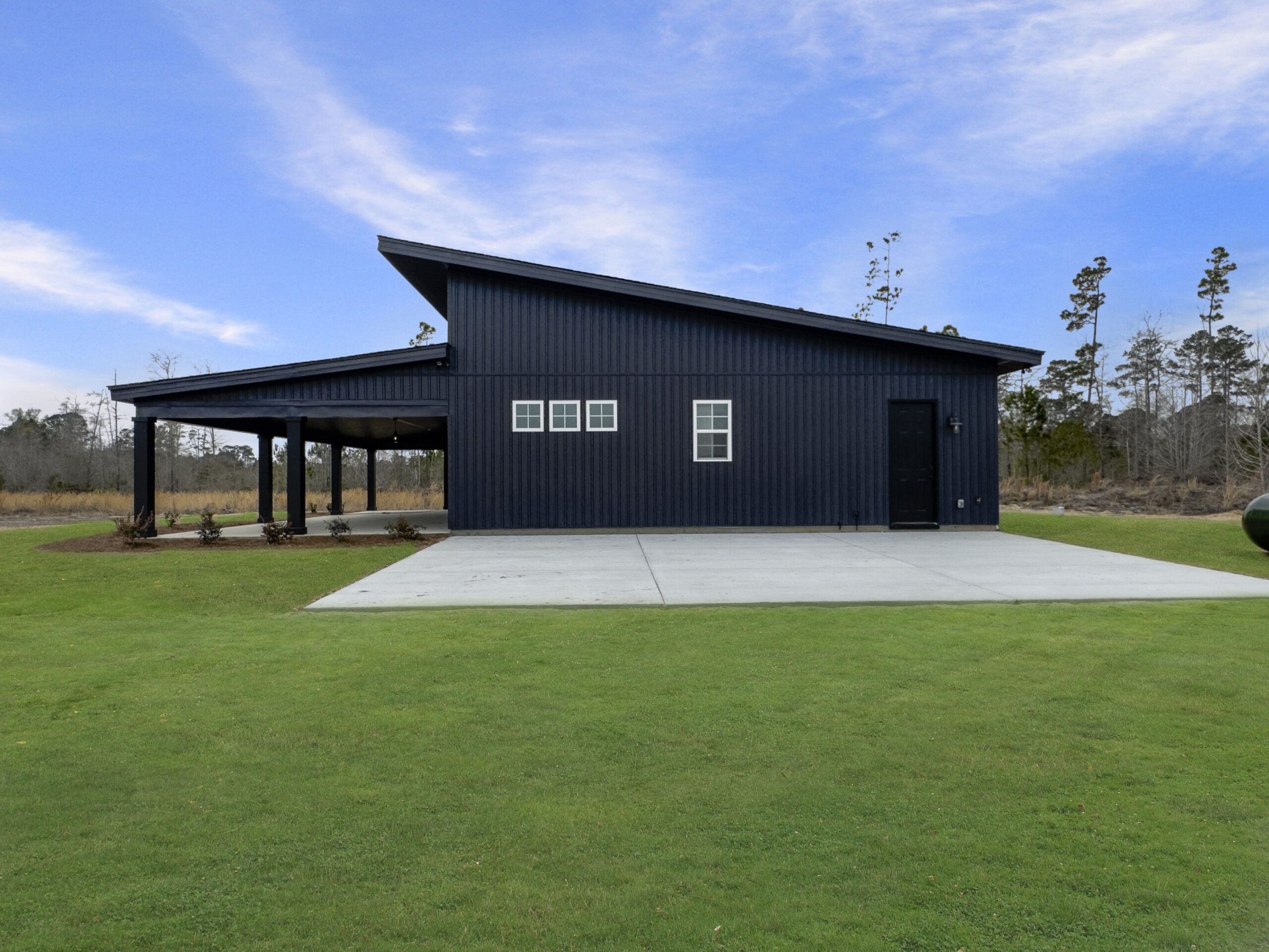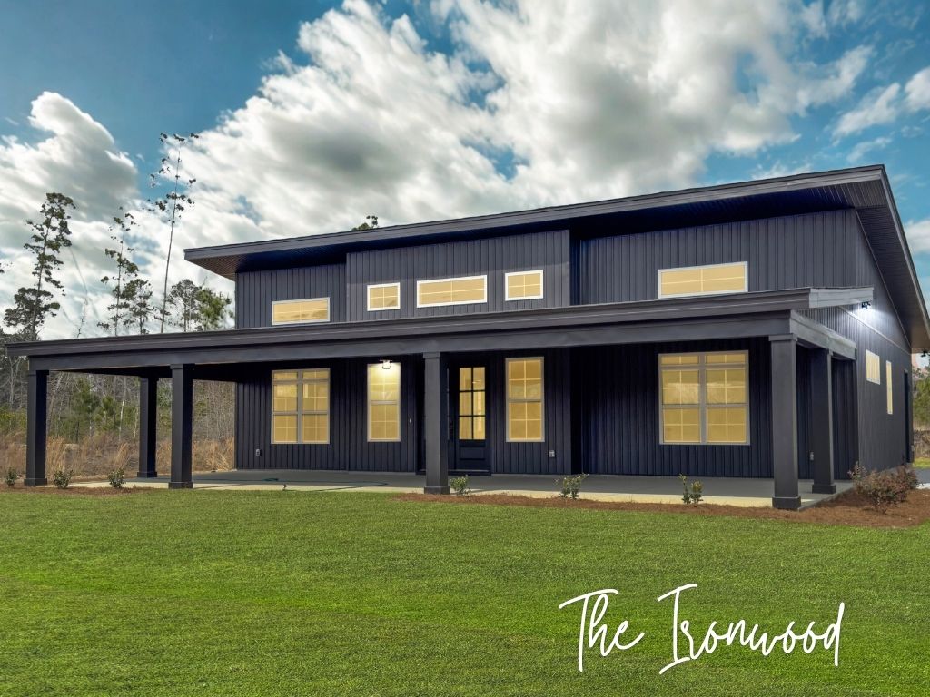 The Ironwood is a modern architectural style barndominium designed for modern living in 1,838 square feet. Its open-concept layout creates a free-flowing connection between the living, dining, and kitchen areas, anchored by a large kitchen island and an oversized walk-in pantry for ultimate convenience.