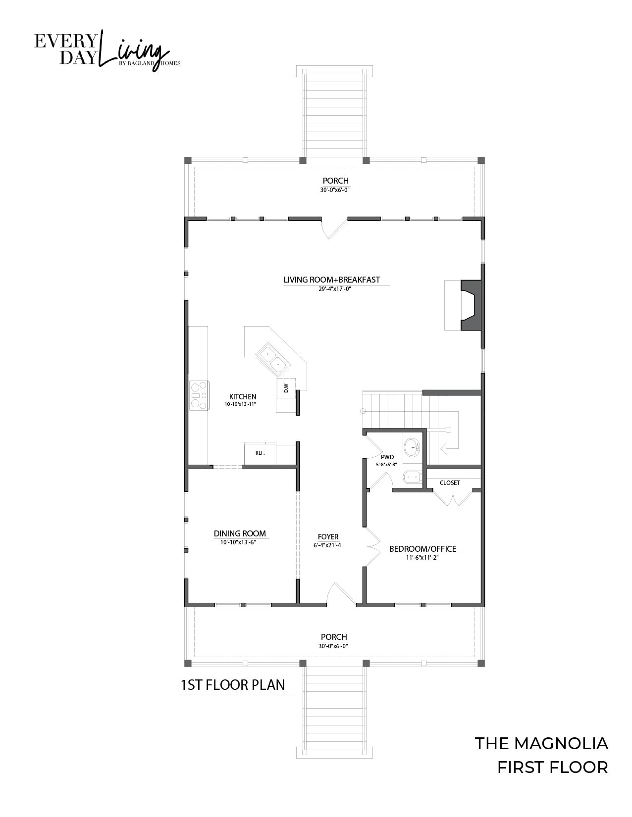 Four large porches extend the living space outdoors, with access from both the main living areas and select bedrooms—perfect for catching coastal breezes and enjoying Lowcountry views throughout the day. With its elevated design, open living spaces, and timeless coastal character, The Magnolia is perfectly suited for Charleston-area living.